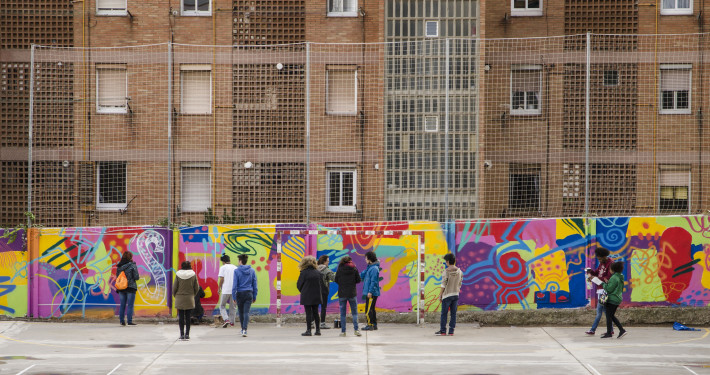 En el barri de Bellvitge s’ha realitzat un procés participatiu a través de la unió de tot el barri, i amb la col·laboració de l’associació de veïns i l’institut Bellvitge, per a celebrar el 50è aniversari del barri. Els estudiants de ’IES han sigut els emprenedors del projecte, i els que han decidit la frase que s’escriuria al mural, tot i que tothom del barri ha participat pintant una part.
